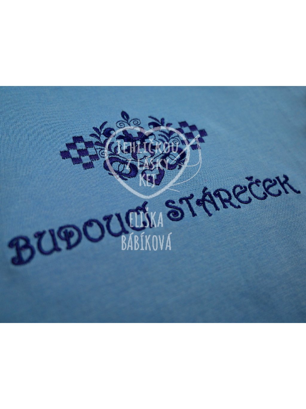 Vážení milovníci folkloru, představujeme Vám dětské tričko s nápisem 'budoucí stáreček'. Toto tričko je ideálním dárkem pro malé folkloristy. Když Vy jste starkovali, nyní může pokračovat i Váš syn v rodinné tradici i v našem dětském tričku. S úctou a láskou pro Vaše nejmenší – to je náš 'budoucí stáreček'.