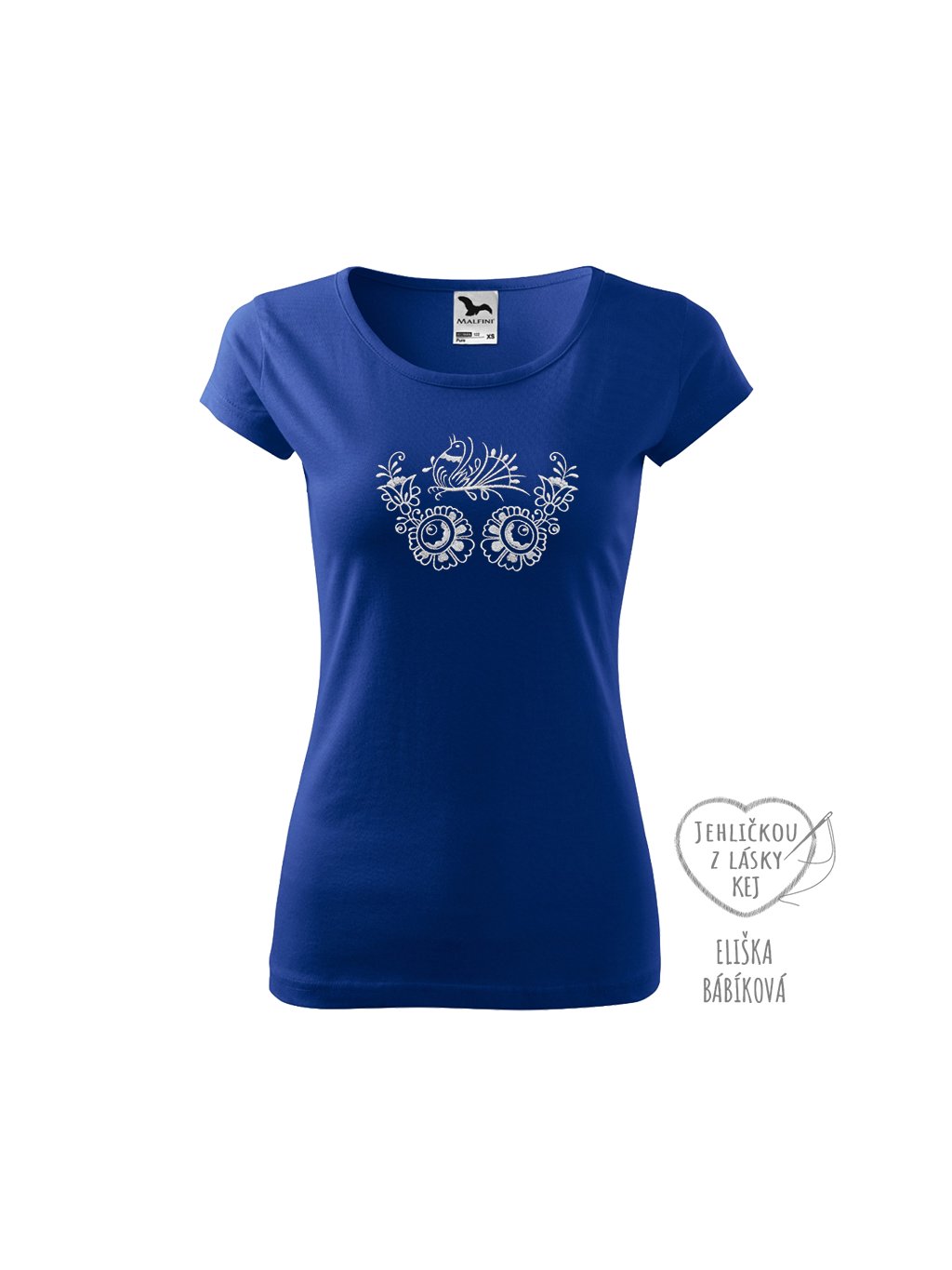 Dámské tričko s vyšitým kohútkem a růžama. Tato jedinečná kombinace spojuje sílu a jemnost, půvab slováckého kraje a eleganci moderní módy. V našem tričku naleznete ducha Strážnice, ale s úctou k tradic. Podle čínské mytologie kohout ztělesňuje pět ctností: slušné chování, protože nosí hřebínek; vojenskou statečnost, protože nosí ostruhy; odvahu, protože se neohroženě pouští do boje; velkorysost, protože se dělí o zrní; a spolehlivost, protože každé ráno kokrhá s neměnnou pravidelností. Výjimečný design a jemné slovácké nářečí vytvářejí jedinečný poutavý kousek pro Vás." Toto tričko bylo stvořeno s úctou a péčí k Vám, aby Vám přineslo radost a pohodlí v každodenním nošení. Přinášíme nejen módu, ale i propojení - sladte se jako pár, protože nabízíme i pánskou verzi. (bez modrotisku)