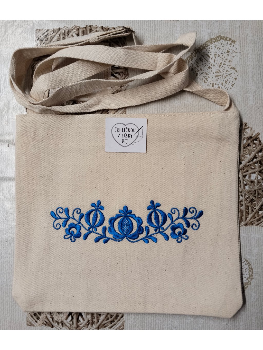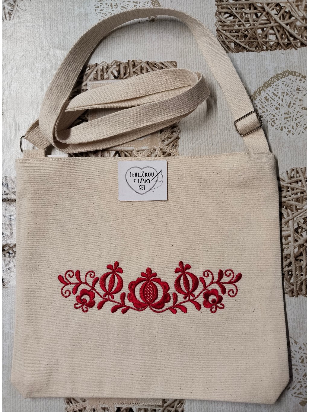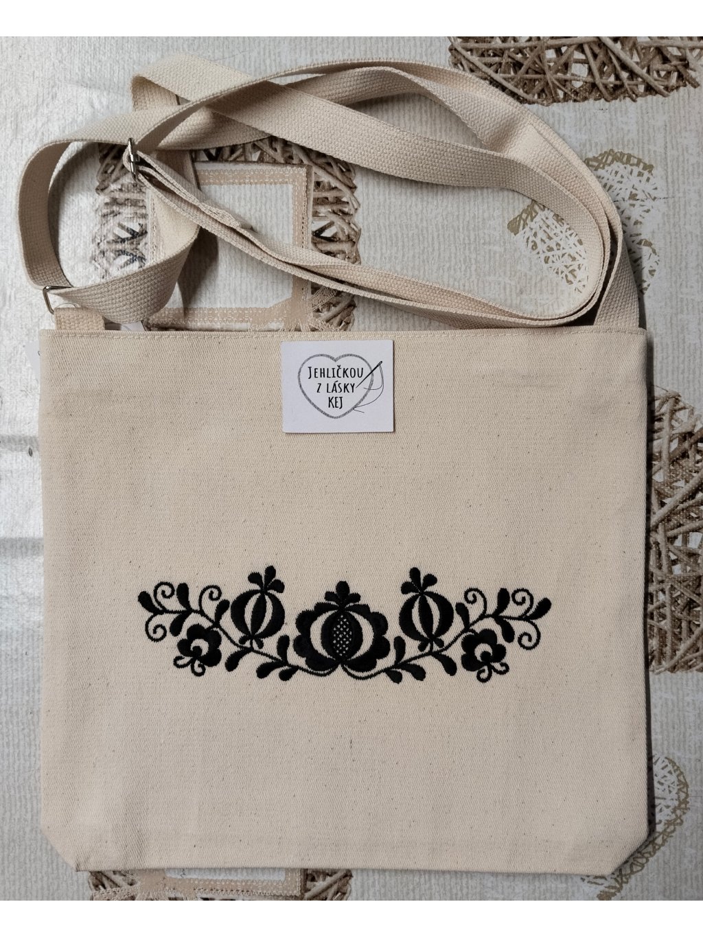 Folklórní kabelka vyrobená z režné bavlněné látky
