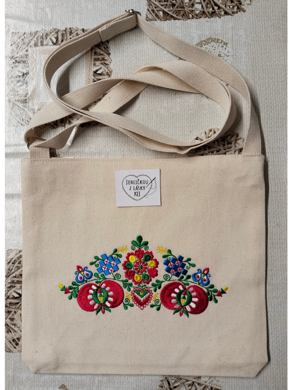 Folklórní kabelka vyrobená z režné bavlněné látky