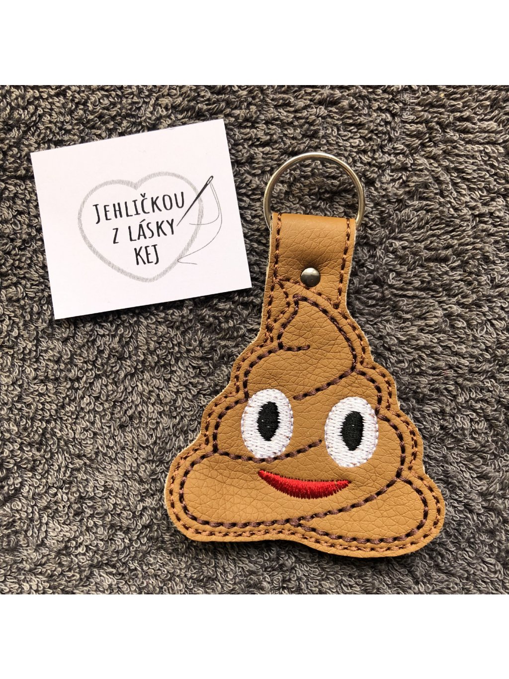 Krásná koženková klíčenka ve stylu emoji hovna s kroužkem na klíče.