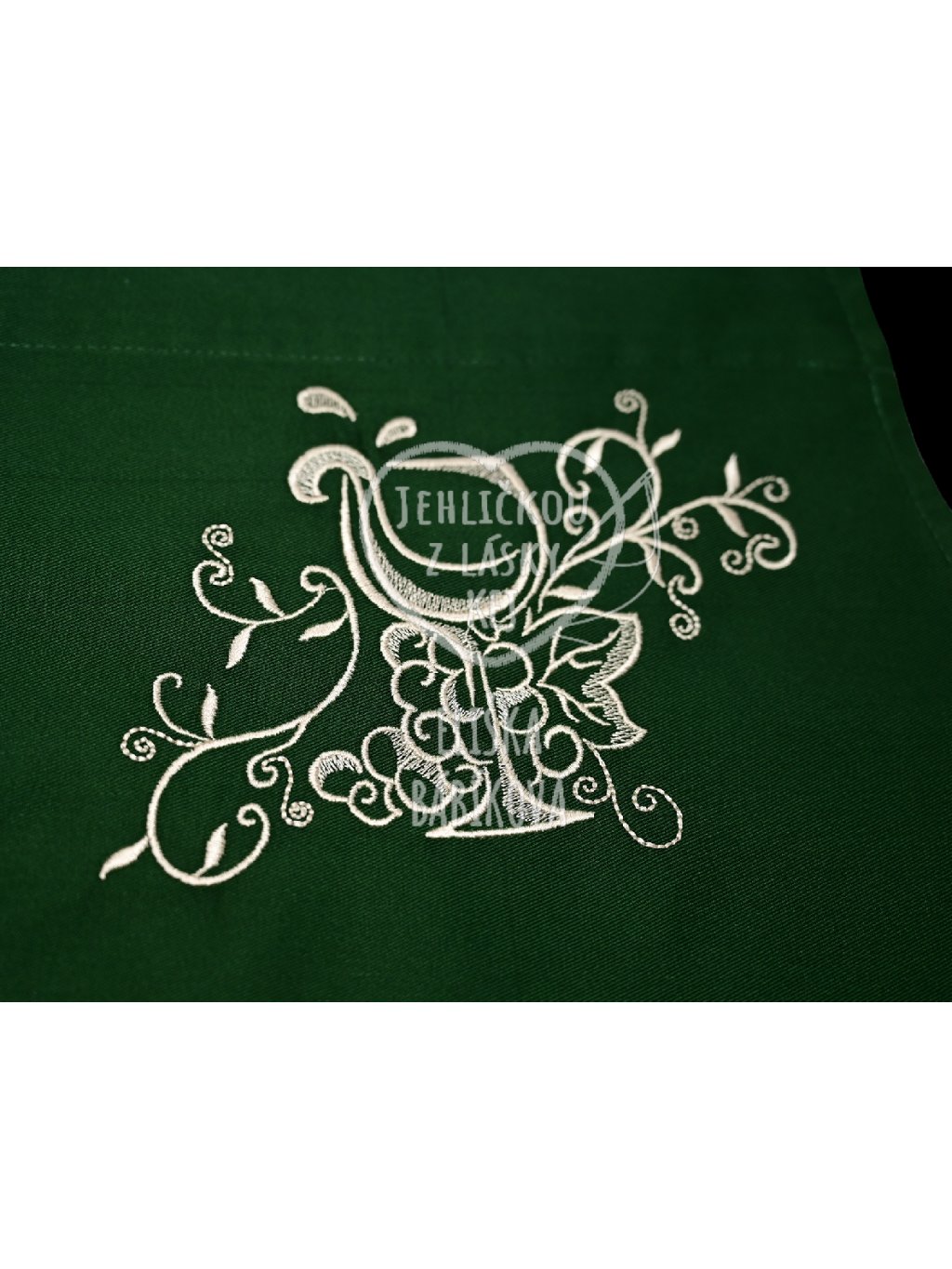 Přinášíme Vám naši kuchařskou zástěru s motivem hroznu a sklenky. S touto zástěrou můžete vařit nejen s radostí, ale také s nádechem naší bohaté tradice. Nenechte si ujít možnost propojit vaření s vínem, které je nedílnou součástí naší kultury. Vařte s vášní a užívejte si každý moment, s hrozny a sklenkou vína jako inspirací a odměnou. . A nezapomeňte si dopřát sklenku vína – nejlepšího společníka pro tvorbu lahodných pokrmů.